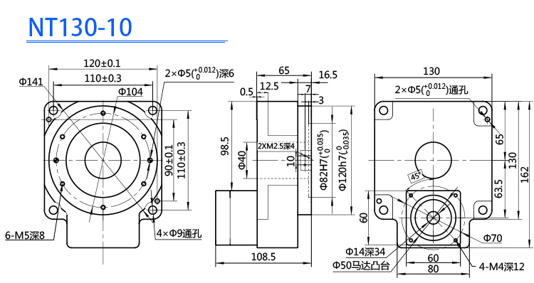 产品命名: N–T- 130 – 010 – P0 - 电机型号
